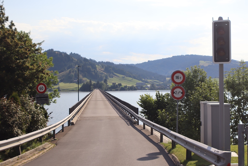 Aber genau genommen interessierte ich mich für die schmale Brücke über den Sihlsee, die jahrelang Gegenstand von Diskussionen und Verhandlungen war, ob abgerissen oder saniert wird. Die Besitzerin des 80-jährigen Viadukts ist die SBB (Schweizer Bundesbahn), weil die Brücke über den Sihlsee Teil der Konzession für das Etzelwerk ist, das jährlich rund 10 Prozent des Schweizer Bahnstroms produziert. Sie wurde 2024 nach mehrjähriger Renovierung genau einen Tag vor meiner Rückfahrt wiedereröffnet, aber ich konnte damals nicht fahren, weil mich der Regen zwang, die Route abzuändern. Aber diesmal passte es.