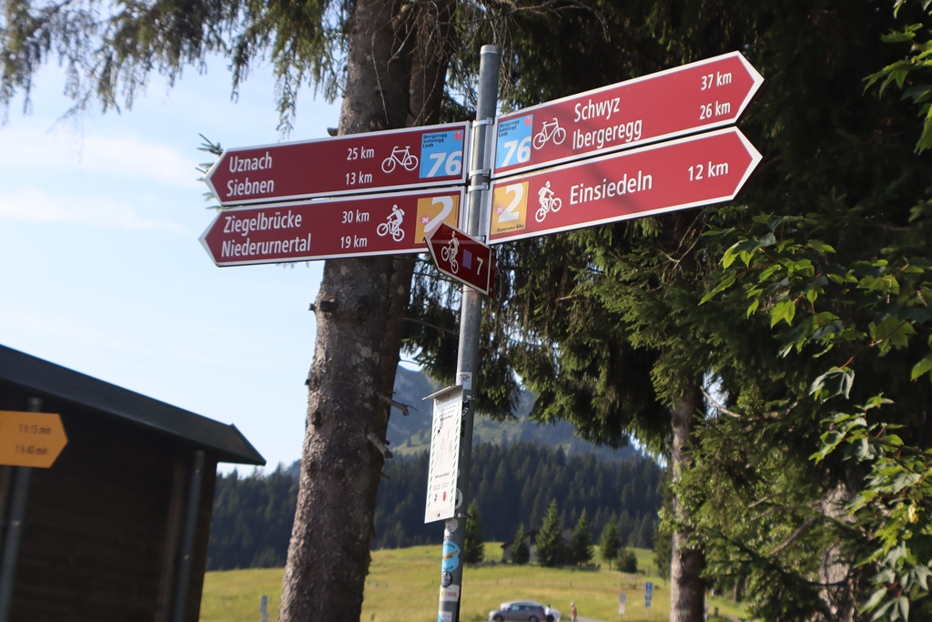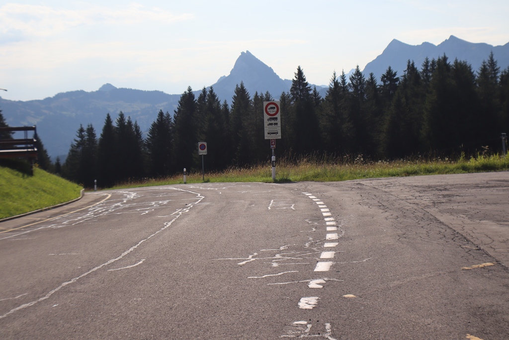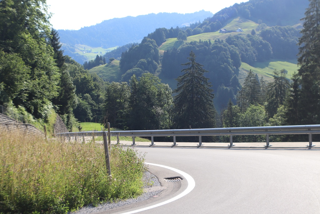 Gleich danach kam der nächste Leckerbissen, der außerhalb der Schweiz praktisch unbekannt ist, und zwar der kleine Pass über das Sattelegg. Die recht schmale und kurvige Straße stammt aus dem Zweiten Weltkrieg und wurde seinerzeit ausschließlich vom Militär genutzt. Heute erschließt sie nicht nur ein kleines Schigebiet, sondern ist auch beinahe ein Geheimtipp bei Schweizer Töff-Fahrern.