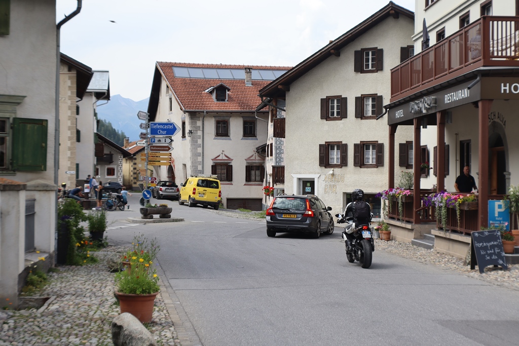Nach der Ortschaft Splügen führt mein Weg auf der H13, der Bundesstraße neben und unter der Autobahn A13 bis Thusis und ins Hotel Waldheimat in Fürstenau, das sich mit rund 350 Einwohnern die kleinste Stadt der Welt nennt. Die kleinste Stadt Österreichs, Rattenberg in Tirol mit rund 500 Einwohnern hat da schon fast Großstadtcharakter.