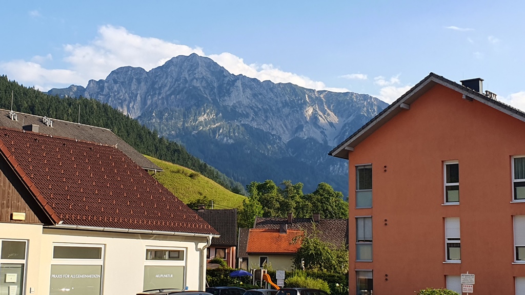 Hier machen die Bundesstraße und die Ortsdurchfahrten auch keinen Spaß, darum fahre ich die B311 bis zur A10 und dann bis zur Auffahrt Eben und dann weiter zu meinem Abstecher nach Radstadt. Nach einer erholsamen Mittagspause in einem schattigen Gastgarten bei einem riesigen Eiskaffee treffe ich zufällig 2 junge Motorradfahrer und eine Radfahrerin aus meiner ursprünglichen Heimat, dem Mostviertel. Die Biker wollen zum Dientener Sattel, von wo ich komme, die Radfahrerin fährt heimwärts in die Melker Gegend.