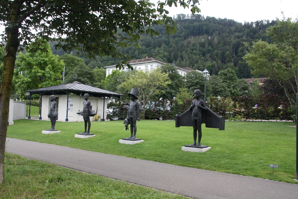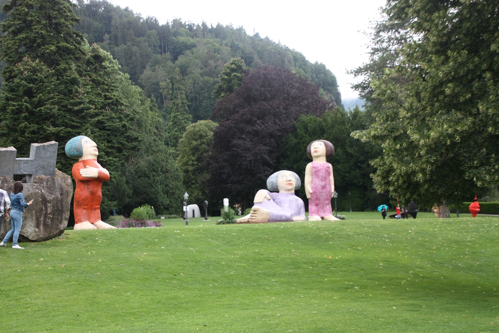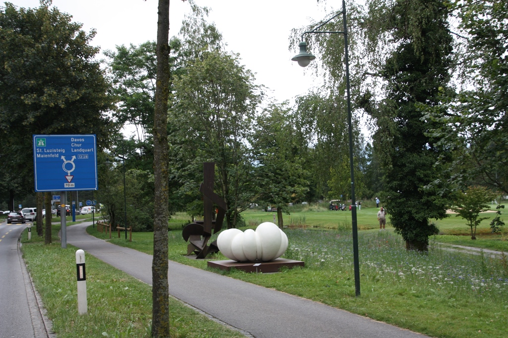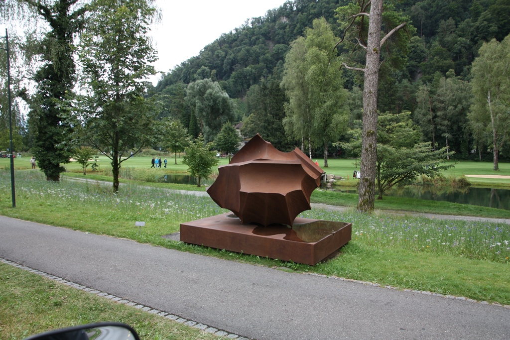 Da ich ja weiterhin keine Schweizer Autobahn-Vignette besitze, geht es auf der Bundesstraße H3 nach Bad Ragaz. Im Kurpark und anderen Grünanlagen präsentieren unter dem Motto „Gegenwart“ 88 Künstlerinnen und Künstler aus aller Welt bis Oktober im Rahmen der größten Freiluft-Skulpturenausstellung ihre Werke. Ich stoppe natürlich des Öfteren um zu fotografieren.