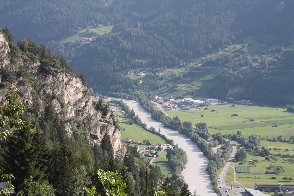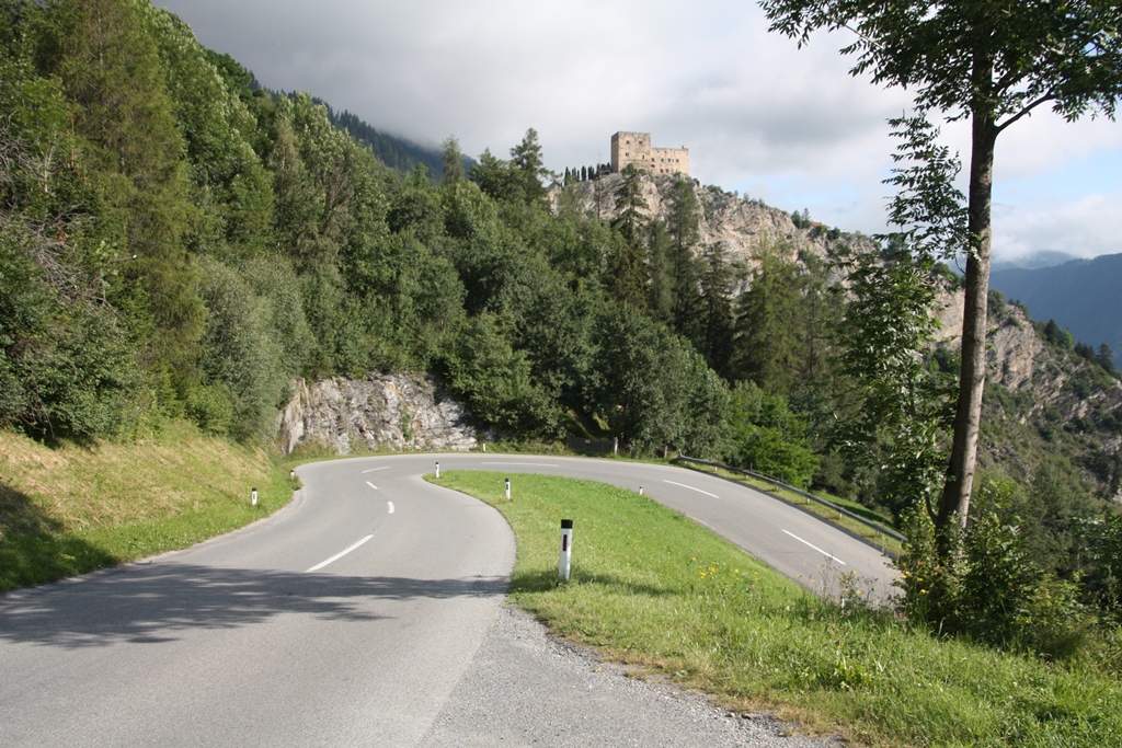 Das Wetter ist in der Früh vielversprechend sonnig, so starte ich kurz nach dem Frühstück und fahre über Ladis mit der Burg Laudegg im Blick los hinunter ins Inntal.