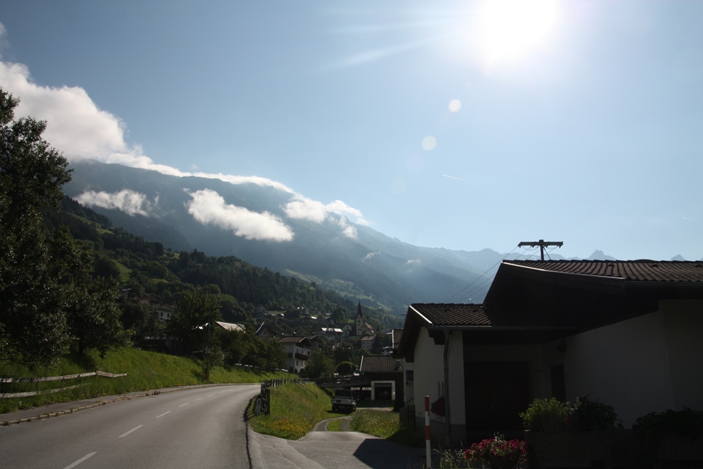 Die Kurven hinauf nach Fiss sind der richtige Abschluss des Tages, der Ausblick hinunter ins Inntal ist aber auch empfehlenswert. Nachdem ich zweimal an meinem Quartier, der Pension Truya-Hof vorbeifahre erkenne ich es bei dritten Mal. Der Hausherr begrüßt mich freundlich und zeigt mir die Garage, wo ich auch mein Motorrad einstellen darf. Nachdem ich schon hungrig bin, gehe ich zum Abendessen direkt ins Nachbarhaus, ins Hotel Montana und danach bald ins Bett.