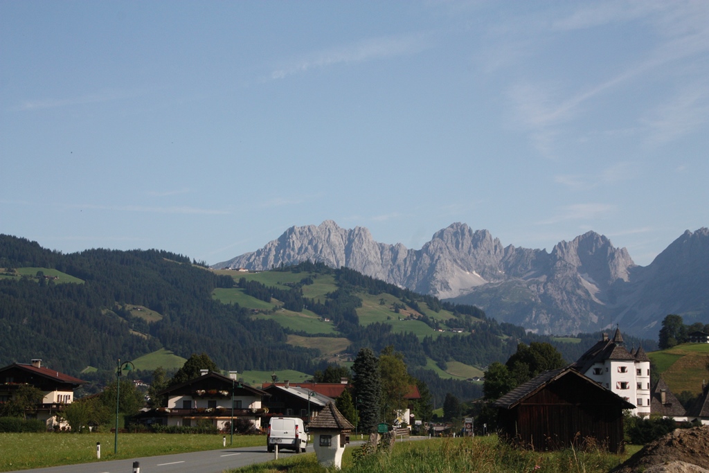 Es macht schon Spaß, nach einem ausgiebigen Frühstück an einem sonnigen und noch nicht zu heißen Morgen direkt auf das Kaisergebirge zuzufahren und das herrliche Panorama zu genießen.