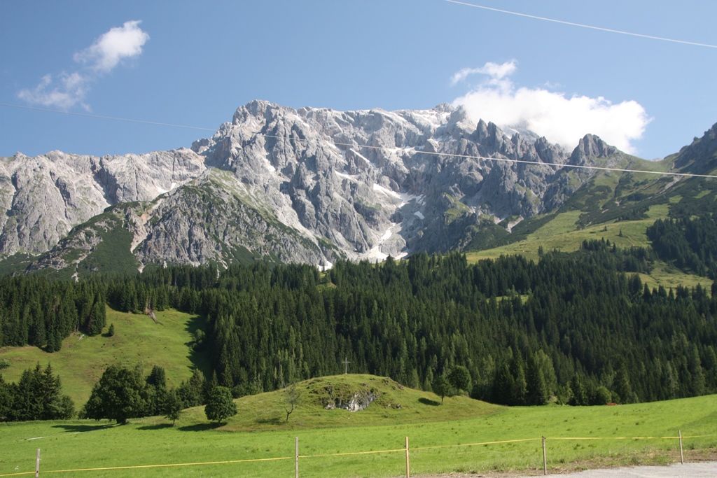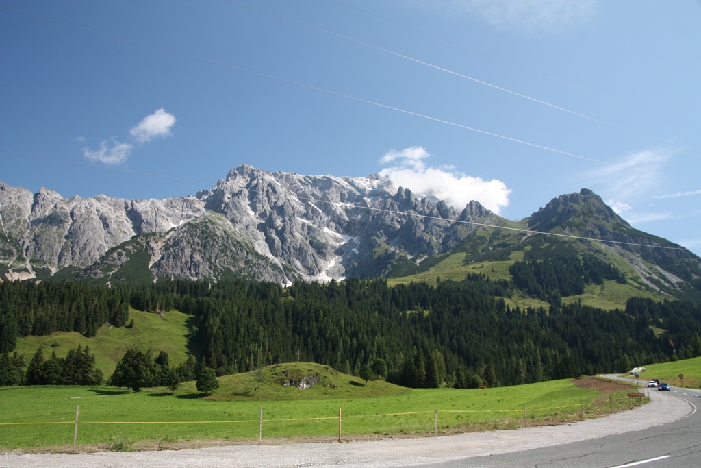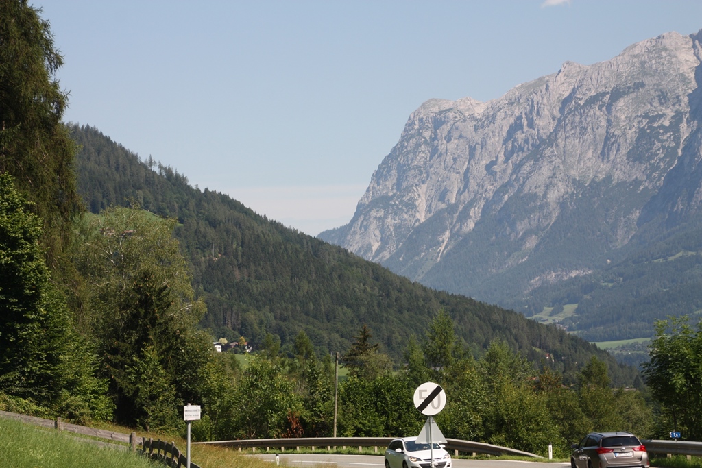 Dann bleibe ich auf der B164 durch Saalfelden, Maria Alm, den Dienter Sattel bis Bischofshofen, links immer mit dem Panorama des Hochkönig.