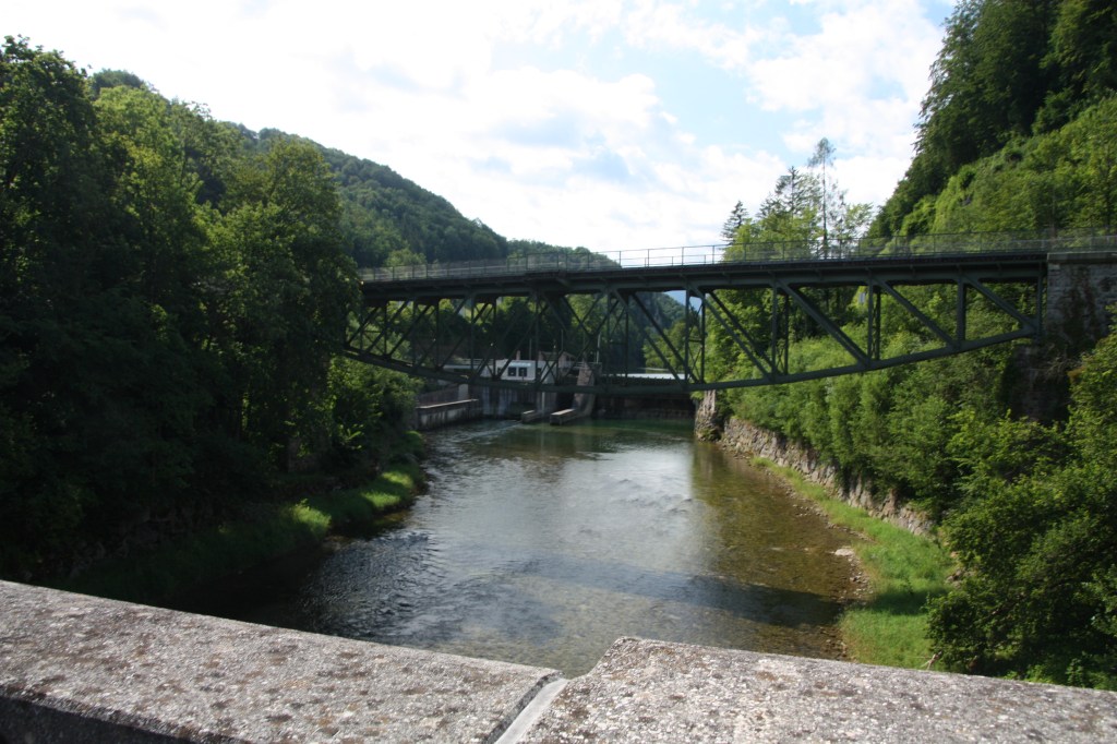 Vorbei an den vertrauten ersten Mostviertler Bauernhöfen geht es hinunter ins Ybbstal, hier waren wir das letzte Mal vor 2 Jahren auf dem empfehlenswerten Ybbstal-Radweg zwischen Lunz und Waidhofen unterwegs. In Gstadt biege ich über die alte Strassenbrücke mit Blick auf die leider nicht im Radweg integrierte ehemalige Bahnbrücke, die sogenannte Fischbauchbrücke, nach Ybbsitz ab.