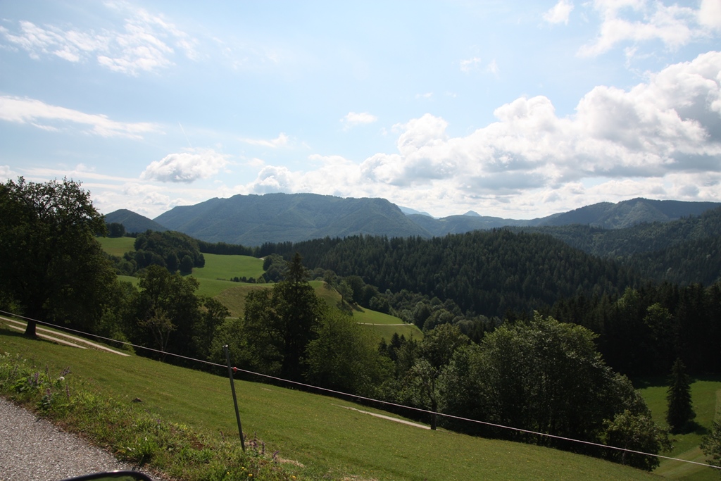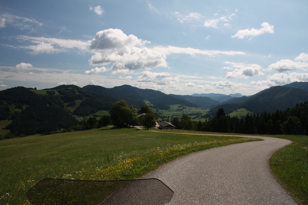 Kurz nach Ybbsitz biege ich in den Zogelsgraben Richtung Maria Sesal ab, fahre dann aber auf schmalen Güterwegen über den Schwarzenberg hinunter nach Ybbsbach zu meinem Elternhaus, wo ich meine Mutter besuche. Ich war schon jahrelang nicht auf diesem Berg und genieße daher den Blick auf Gresten, den Zürner und den Prochenberg besonders.