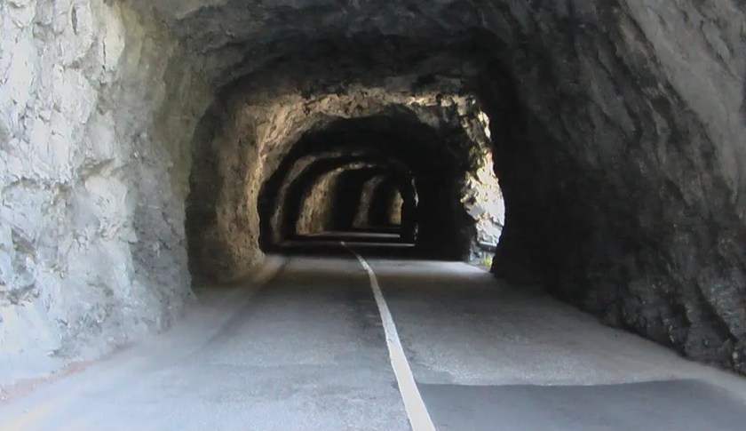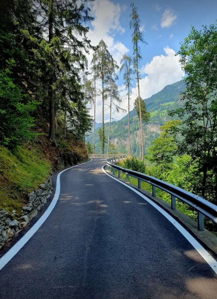 Die österreichische Grenze ist nicht mehr weit und die Zollfreizone Samnaun ruft zum Tanken. Die Straße von Martina weg ist am Anfang recht harmlos und wird enger und enger und wird mit 2,3 m angegeben. Dabei kommen einige Felsentunnels die unbeleuchtet, nass und kurvig und gefühlt weniger als einspurig sind. Mit dem Motorrad an sich kein Problem, solange nichts entgegen kommt, aber trotzdem, da waren die Felsentunnel im Trentino fast wie Autobahnen dagegen. Ich habe Glück und keinen Gegenverkehr und stelle fest, dass ich vermutlich das letzte Mal zumindest durch den längeren durchgefahren bin. Die Tunnelbaustelle Val Alpetta ist fast fertig, der neue gut 600 m lange Tunnel soll im Sommer 2024, also demnächst eröffnet werden, die Verkehrszeichen sind schon montiert. Damit ist wieder ein gruseliger Tunnel Geschichte. In den nächsten Jahren sollen zwei weitere Tunnel errichtet werden, dann ist nichts Spannendes mehr von diesem engen kurvigen Strässchen übrig.