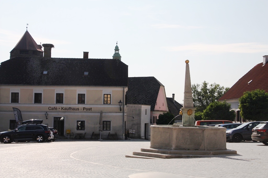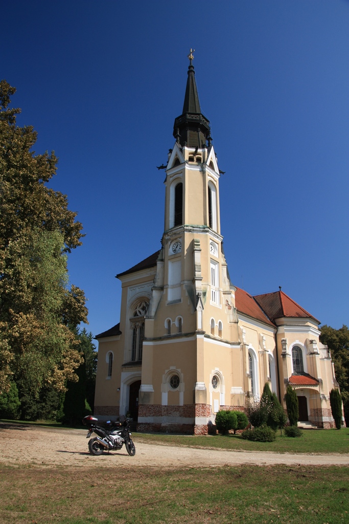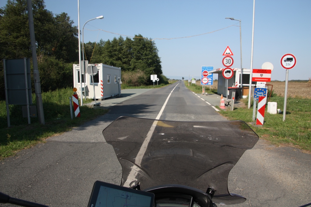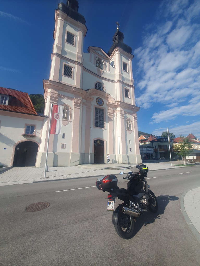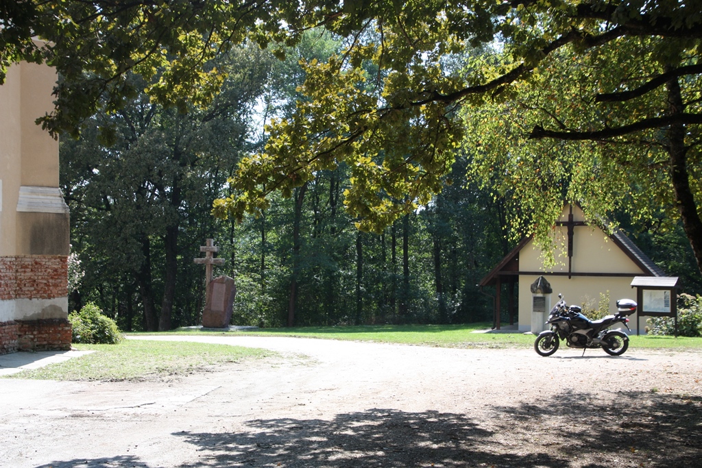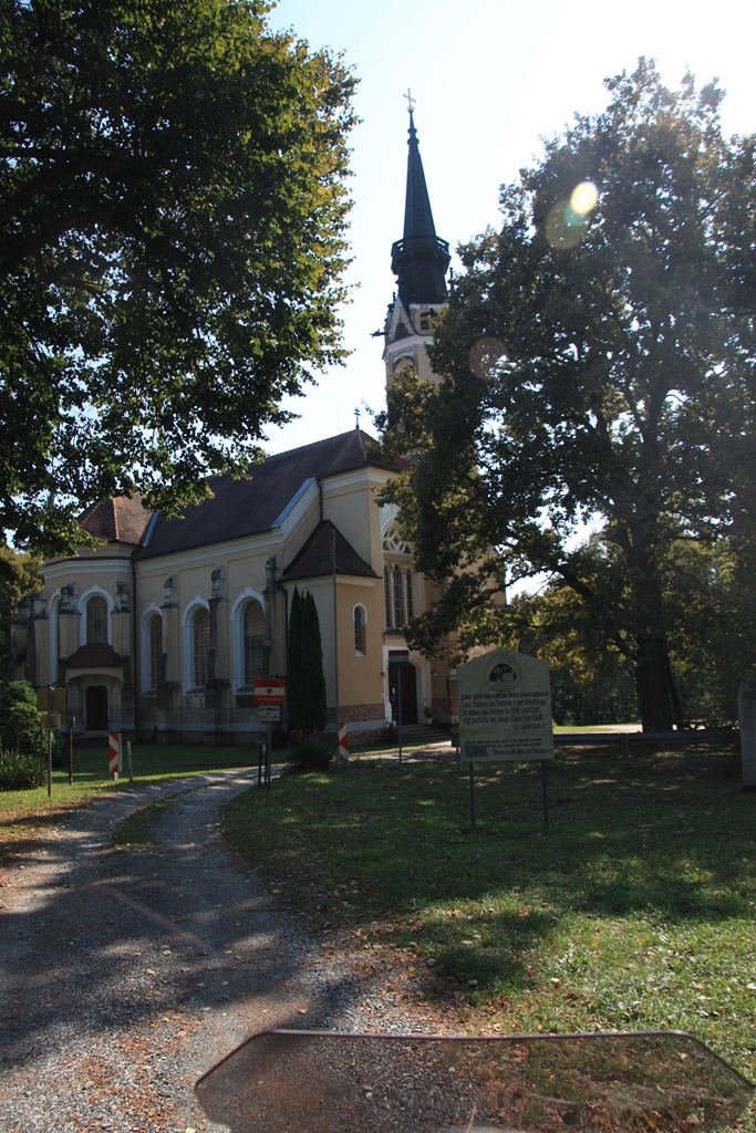 Ich parkte mein Motorrad am Platz vor der Kirche, die während des Zweiten Weltkriegs von Österreich abgeschnitten wurde und dann während des Kommunismus zerstört direkt hinter dem Eisernen Vorhang lag. Bilder in der ab 1990 mit viel Engagement renovierten Kirche zeugen davon.