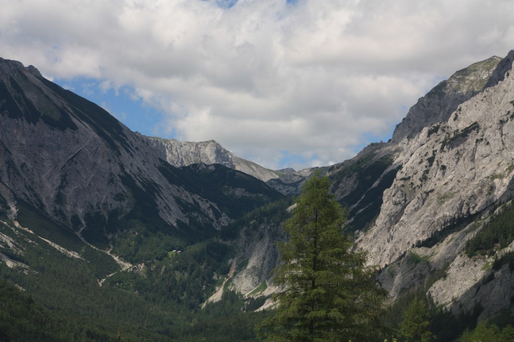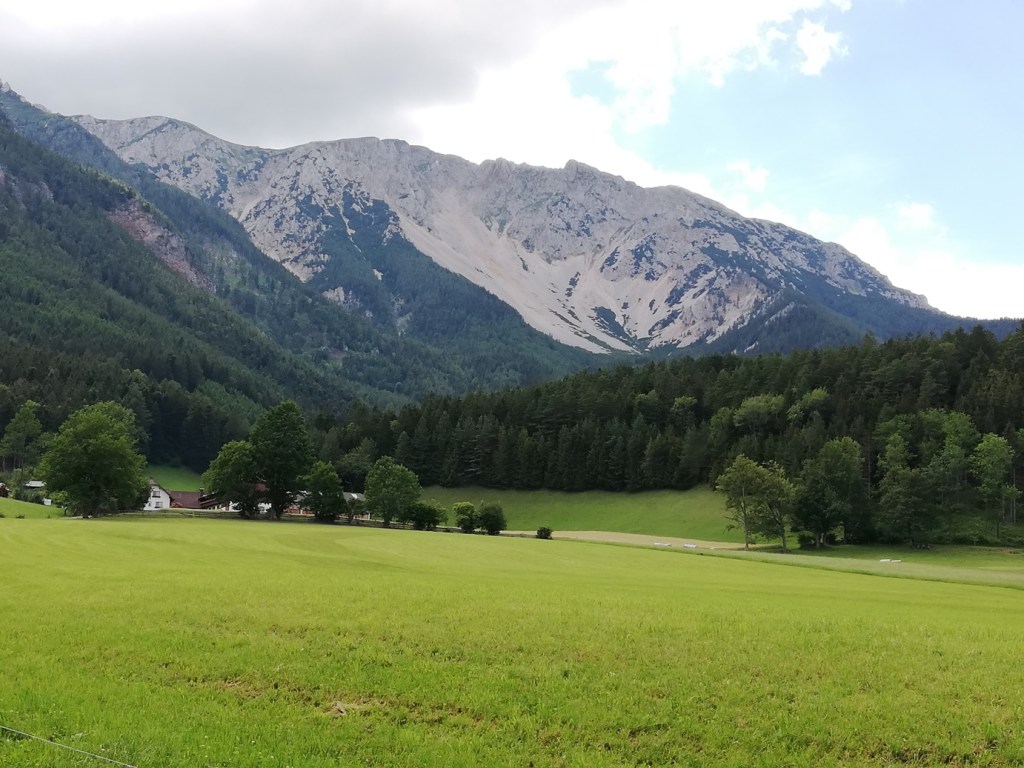Der Blick auf die teilweise schneebedeckten gut 2200 Meter hohen Felsgipfel im Hintergrund ist für uns alle atemberaubend und noch dazu bin ich der Einzige, der diesen Platz schon kennt. Das Haus Bodenbauer wurde Ende 2023 neu übernommen und ist bei unsrer Ankunft ziemlich gut besucht. Wir werden trotzdem freundlichst begrüßt und sehr rasch bedient, auch das Essen ist absolut empfehlenswert.