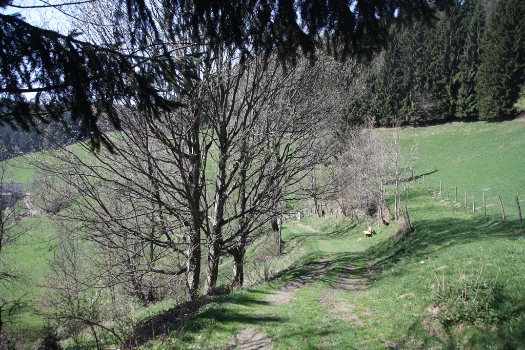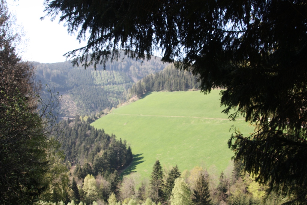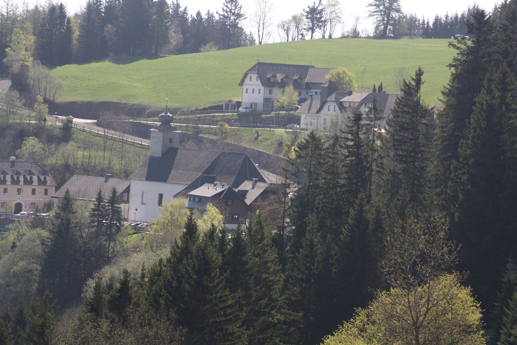 Wir fuhren aber weiter durch die Stadt und hinauf über die Schlaglstraße nach Otterthal. Hier geht es links ins ebenfalls empfehlenswerte Wechselgebiet, wir nahmen aber die Abzweigung nach rechts Richtung Feistritzsattel, wo auf der Passhöhe die Grenze zwischen Niederösterreich und der Steiermark liegt. Von hier kann man zu Fuß oder mit dem Mountainbike über die „Wexltrails“ den Hochwechsel erreichen.