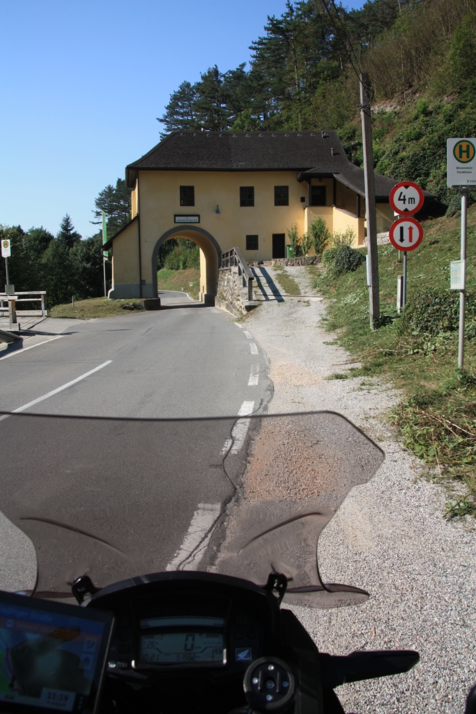 Man könnte hier über Gutenstein und Rohr am Gebirge bis in die Kalte Kuchl fahren, wir bogen aber bereits nach wenigen Kilometern links Richtung Miesenbach ab. Die Kurven des Ascher führen hinunter nach Puchberg am Schneeberg, von wo es weiter auf der B26 vorbei an der Burg Stixenstein mit der markanten Tordurchfahrt bis Sieding ging.