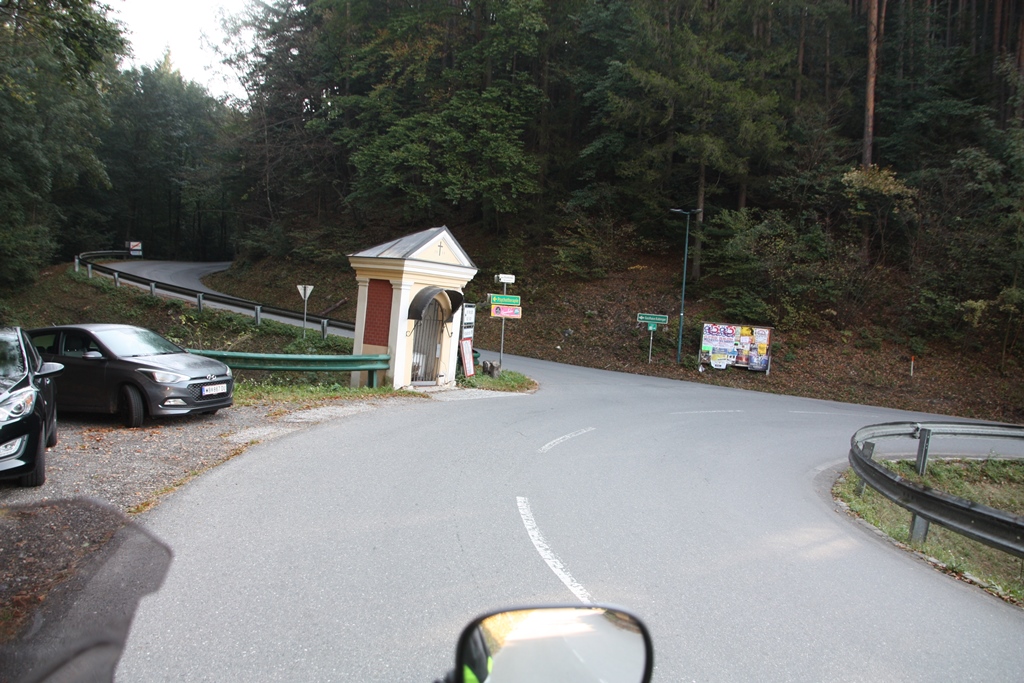 Die ersten schönen Kurven führen über die schmale Straße vom Quartier hinunter nach Feldkirchen. Erst durch einen Wegweiser wird mir klar, daß mich das Navi über die Gerlitzen leitet. Bald kommen die ersten Haarnadelkurven bis hinauf auf rund 1000m zur ehemaligen Missionsstation Klösterle, die heute ein mietbares Ferienquartier ist. Gegenüber liegt auch die Talstation der gleichnamigen Sesselbahn.