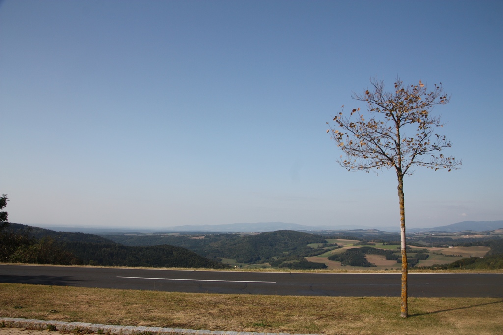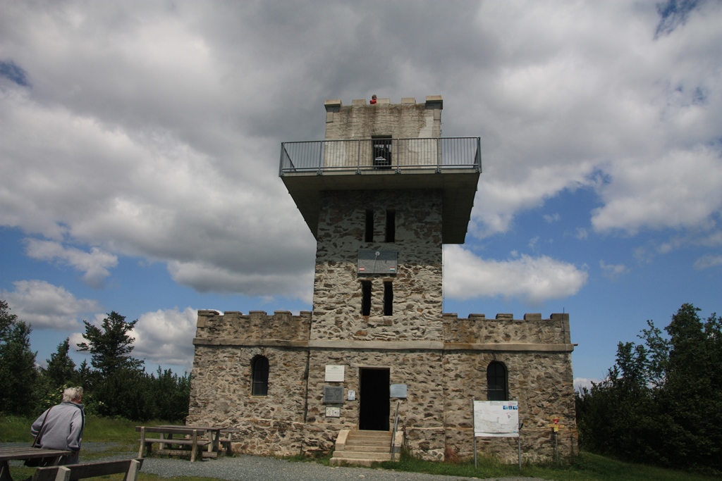 Der Wolf von Bike on Tour empfiehlt den Geschriebenstein auch als kurvenreichen Ausflug auf den Berg der Burgenländer, ich kann dem nur zustimmen. Am Parkplatz am Scheitelpunkt könnte man in einer halbstündigen Wanderung zum Aussichtsturm gehen, wo genau durch die Mitte der Aussichtsplattform die Staatsgrenze zwischen Ungarn und Österreich verläuft.