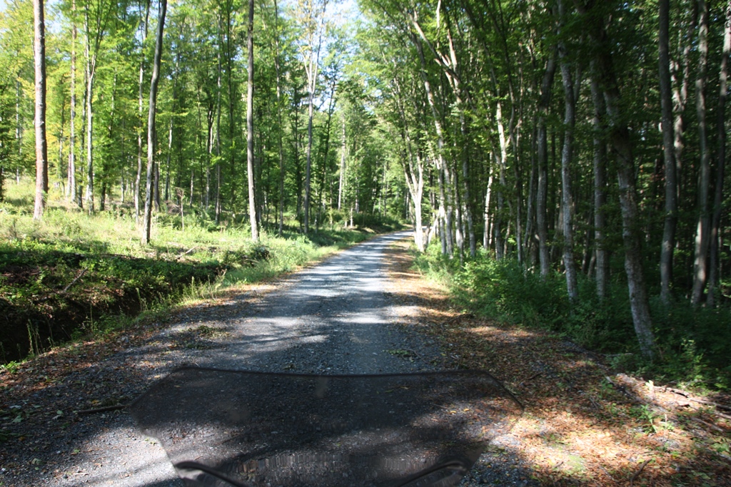 Nochmals zwei Dörfer weiter leitete mich das Navi über einen extra holprigen Weg und eine kleine Brücke wieder zurück nach Österreich auf die B56 und weiter vorbei an Eisenberg bis nach Rechnitz. Hier gönnte ich mir im ersten Supermarkt seit Güssing eine Leberkäsesemmel zur Stärkung, bevor es weiter auf den Geschriebenstein ging.
