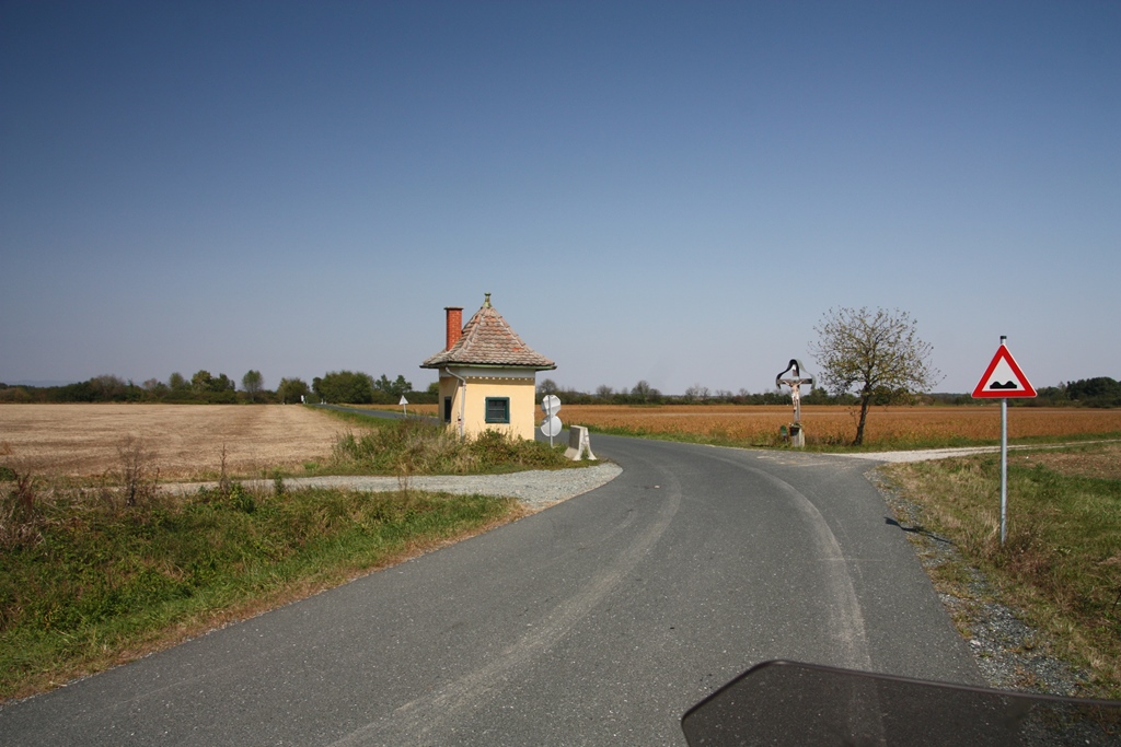Meine Route führte mich jetzt wieder Richtung Norden die B56 entlang bis kurz nach Moschendorf, wo mich mein Navi an einer Kapelle quasi über die Direttissima leitete.