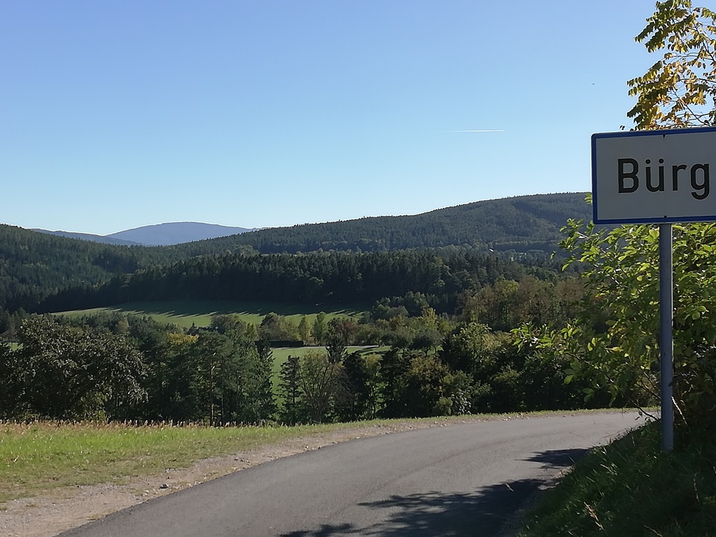 Wer mich kennt oder schon einige meiner Motorrad-Blogs gelesen hat, weiß, dass ich gerne kleine Sträßchen erkunde, darum fuhren wir hier rechts weg von der Bundesstraße und den einspurigen Ambachweg hinauf nach Bürg und dort rechts weiter auf der L4163 zum Gut Gasteil, das ein Künsterehepaar mit dem Projekt „Kunst in der Landschaft“ seit vielen Jahren bekannt gemacht hat. Ein paar nette Kurven weiter kamen wir schon nach Priglitz, von wo ich normalerweise geradeaus weiter nach Auf der Wiese hinunter nach Schlöglmühl fahre.